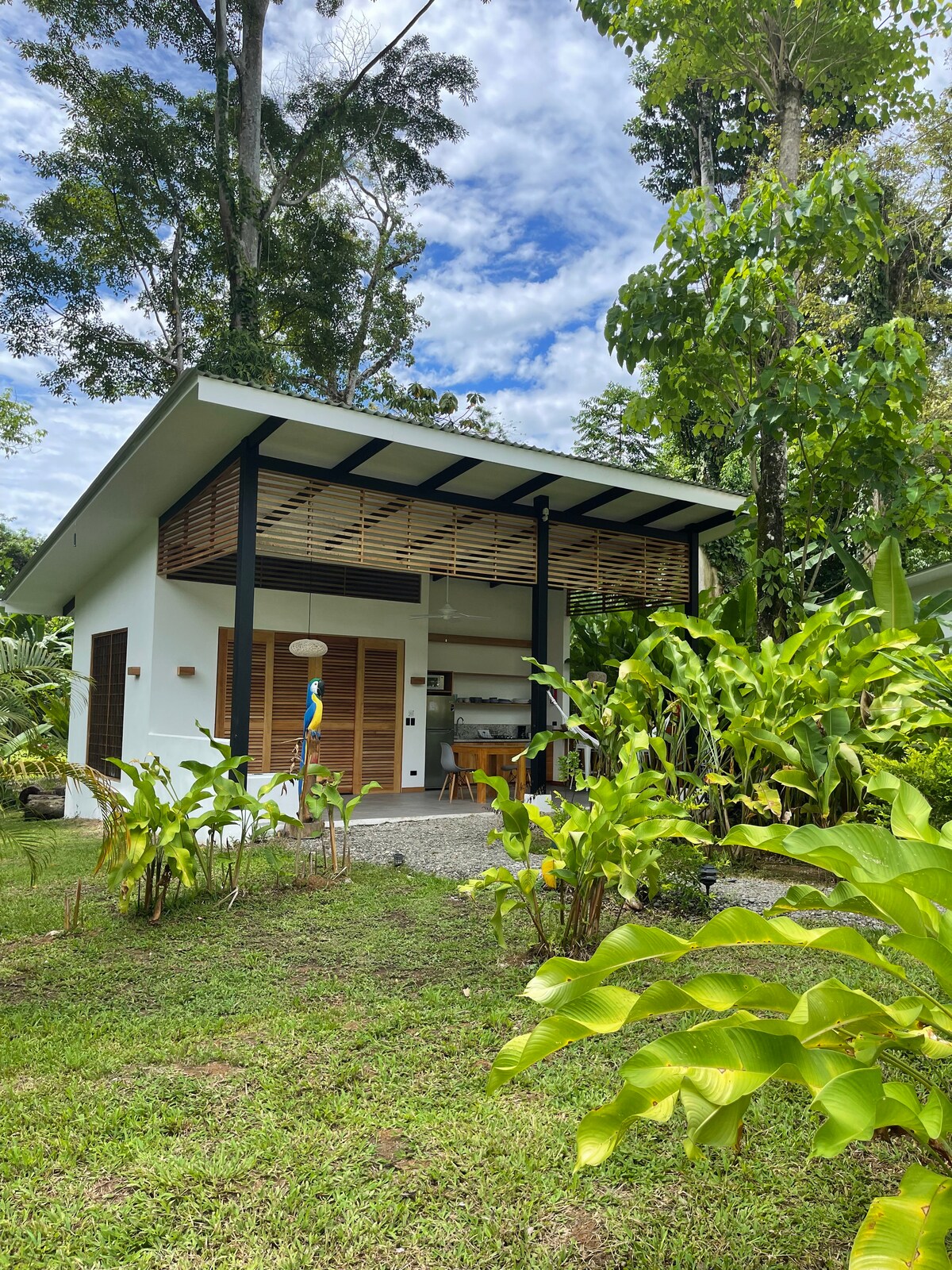 Listen to birdsong and the gentle sounds of the jungle in your Caribbean vacation home, just steps from the soft sands of Playa Negra. This cozy retreat features two bedrooms, two en-suite bathrooms, a fully equipped kitchen, and a spacious, beautifully designed veranda. Enjoy high-speed fiber internet and secure parking within a gated property. Surrounded by a tropical garden, experience the authentic spirit of Costa Rica in the most magical way.