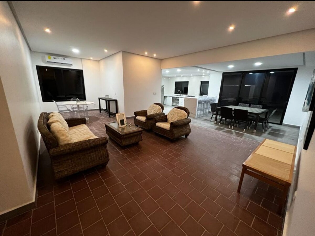 Շքեղ ավազներ ։ Հանգստացեք ամբողջ ընտանիքով այս դրախտում ։ Տեղակայված է Սան Կառլոսի Կոստա Էսմերալդա քաղաքում գտնվող մասնավոր լողափնյա համայնքում ։ Համաամերիկյան մայրուղուց մի քանի րոպե հեռավորության վրա և մի քանի րոպե տեղական այլ լողափերից, ինչպիսիք են Գորգոնան և Կորոնադոն: Մեր լողափը 5 րոպե քայլելու հեռավորության վրա է, կամ, եթե նախընտրում եք, կարող եք գնալ մեքենայով։ Տանը կա հիանալի աղի ջրով լողավազան և ջակուզի՝ ցանցաճոճերով, որտեղից բացվում է հիասքանչ տեսարան դեպի արմավենիներ։ Անխափան էլեկտրամատակարարում՝ խելացի տնային էներգիայի կառավարման համակարգերով։