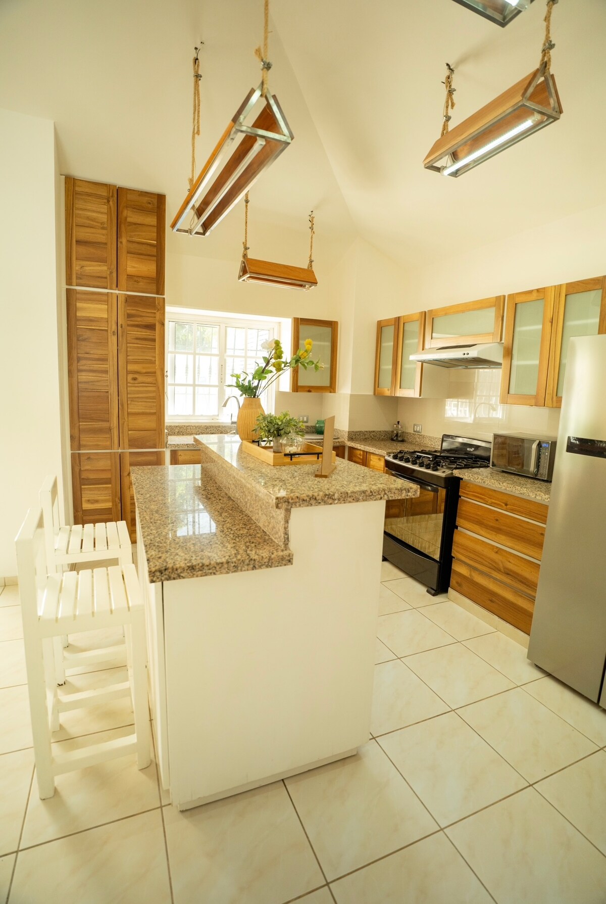 Գեղեցիկ բնակարան ծովից մոտ 1 կմ հեռավորության վրա և Պուերտո Պլատայի պատմական կենտրոնից, որտեղից բացվում է գեղեցիկ տեսարան դեպի քաղաք և լեռներ ու ծով : Հանգիստ և մասնավոր տարածքում ՝ բոլոր ծառայություններից, սուպերմարկետներից, լողափերից մեկ քայլ հեռավորության վրա լավ կահավորված ռեստորաններ Տունն ունի առանձին կայանատեղի ՝ ավտոմատ դարպասով, գեղեցիկ լողավազան ՝ սպասքի աթոռներով և բացօթյա սուրճի սեղանով ։ Հագեցած է բոլոր հարմարություններով, խոհանոց ՝ կղզիով, մեծ հյուրասենյակ ՝ բազմոցով 2 ննջասենյակ 2 լոգասենյակ ՝ օդորակիչով, լվացքի տարածք և պատշգամբ