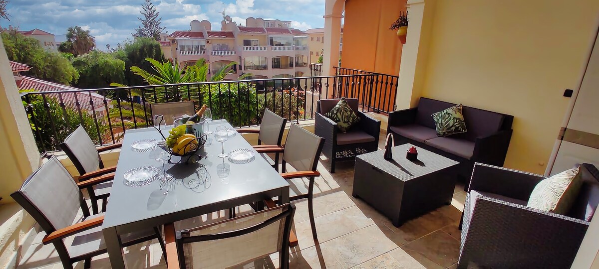 Cozy Apartment in ideal location with a seperate bedroom and terrace. Multiple Beaches, Shopping-Centers and the harbor Puerto Colon are within walking distance. The apartment complex offers 3 pools, a Poolbar, Tennis- and Football courts. The apartment and the whole complex are barrier-free. There is a large number of parking spaces available. You can also enjoy the holiday experience with a variety of bars and restaurants in this quiet and central Apartment.
