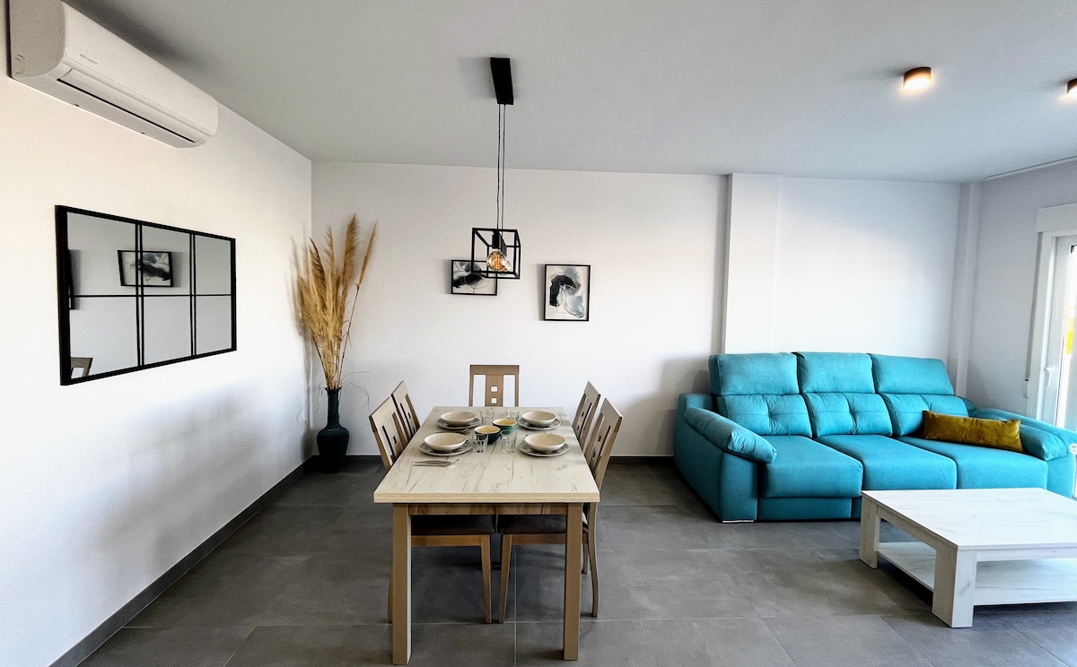 A beautifully refurbished in March 2022 and fully redecorated in November 2024. Equipped to a high standard with all modern appliances for your most comfortable stay. It is located in a unique and not widely known Spanish holiday destination. A hidden gem. Sweeping mountains and magnificent sandy beaches surround the bright apartment. The apartment is designed to offer both outdoor and indoor living; In summer, the living room and terrace follow an open view to the beach and mountains.