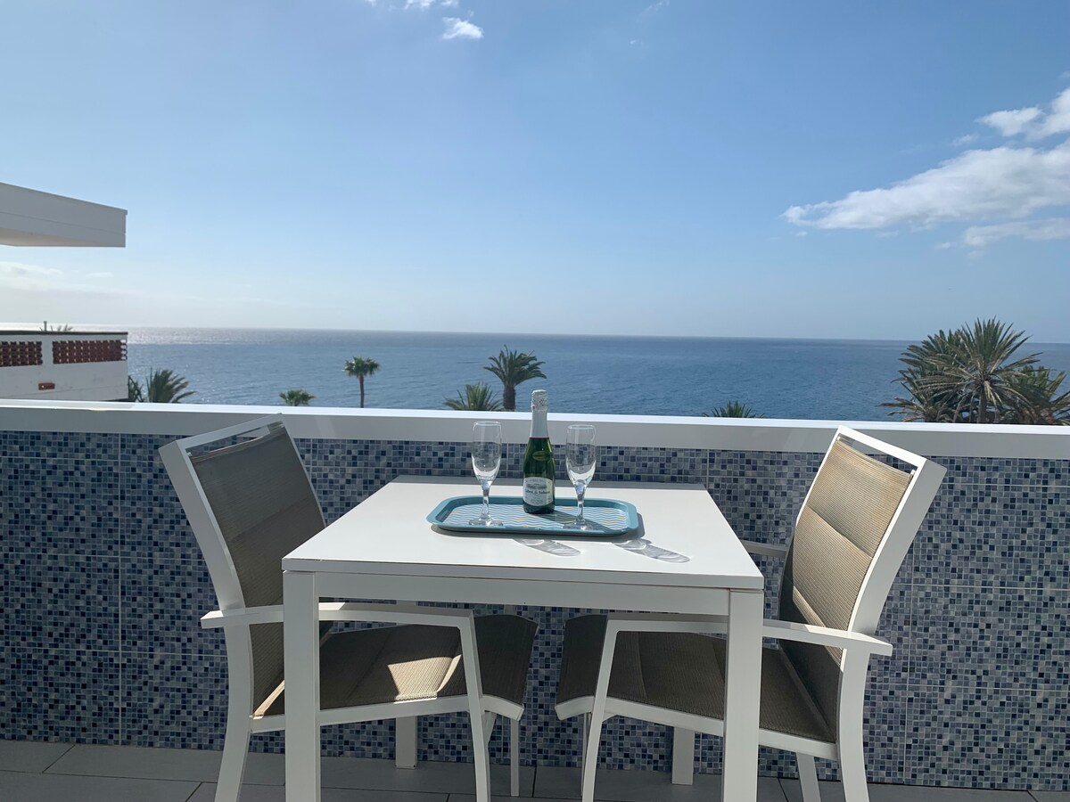 This stunning apartment takes your breath away from the moment you step inside. Very clean, modern, comfortable and located in a quiet residential area of San Agustín with a shared pool area. From the living area and balcony you have the most amazing view over the ocean. At only 10 minutes walking distance or 160 panoramic staircase steps from the beach. The apartment situated on top-floor includes a bedroom, bathroom and a comfortable living area with a fully equipped kitchen.
