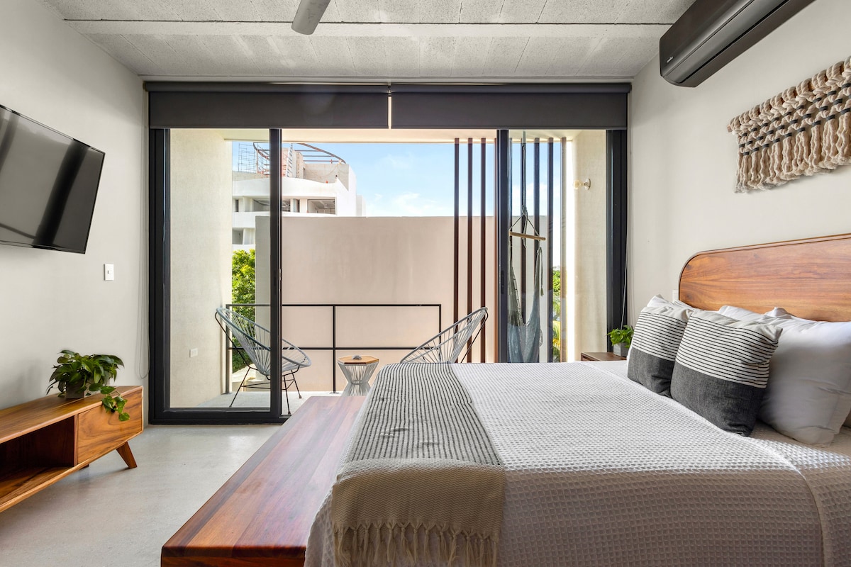 Բարի գալուստ ձեր տուն ՝ տնից հեռու ։ Պլայա դել Կարմենի կենտրոնում գտնվող բոլորովին նոր ժամանակակից աշտարակում գտնվող մեր 1BR բնակարանը հարմարավետության և ոճի կատարյալ համադրություն է: Այն կոնդոմինիումի մի մասն է, որն առաջարկում է երկու աշխարհներից լավագույնը ՝ բնակարանի մտերմությունն ու ընդարձակությունը, ինչպես նաև բացառիկ ծառայություններ ՝ ձեր հանգիստն աներևակայելի հարմարավետ դարձնելու համար: