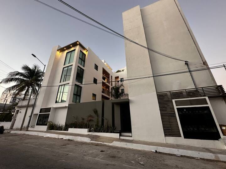 Սիրուն, ժամանակակից ստուդիա քաղաքի կենտրոնում գտնվող բոլորովին նոր շենքում: Շատ անվտանգ տարածք, ապահով շենք ՝ շուրջօրյա պահակով և ավտոկայանատեղիով ։ Ոտքով 3 րոպե մինչև Հիլթոն լողափ և ոտքով 10 րոպե մինչև տեղի ունեցող Մամիտասի երեկույթի լողափը ։ Գրեթե հայտնի 5 - րդ պողոտայի (Լա Կինտա) անկյունում, բայց բավականաչափ հանգիստ եղեք ։ Սա պրեմիում վայր է, որտեղից բացվում է ապշեցուցիչ տեսարան դեպի Կարիբյան ավազանը ՝ տանիքի լողավազանից ։ Դուք չեք կարող ավելի լավ մնալու տեղ գտնել Պլայայի կենտրոնում ։