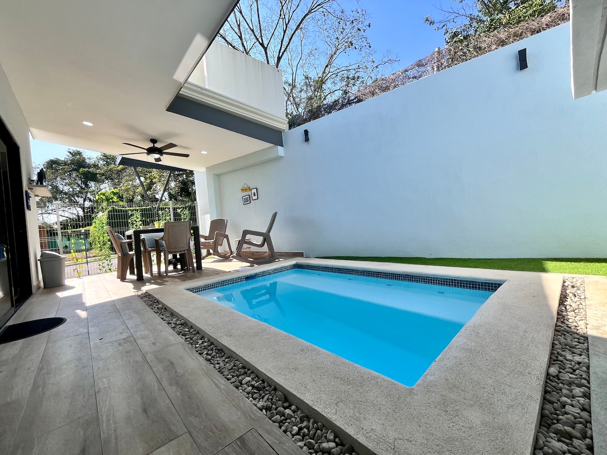 Private, gated comunity in Playa Hermosa Jaco You might walk to the beach. Private security guard, nice green extensive gardens.Perfect for a great getaway, you will be able to stay with your family or a group of friends. The house includes the option of one master suite , double guest bethroom /office. Features a living social area with retractable glass doors for the open air experience, ample decks around the private infinity swimming pool with waterfall, fully equipped kitchen and BBQ grill