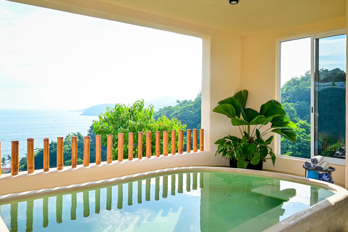 2bdr ժամանակակից բաժանմունք սիրված condominio casa que ve al mar at most Sought beach in zihuatanejo of la ropa, with access to unfinite pool and private bubble jacuzzi, sun deck and outdoor lounge. Ոտքով հեռավորություն դեպի լա ռոպայի լողափ ։ Այս և այլ idéntica բաժիններին կարելի է միանալ ՝ մեկ չորս ննջասենյակ պատրաստելու համար ՝ օգտագործելով կտուր և լողավազան ։