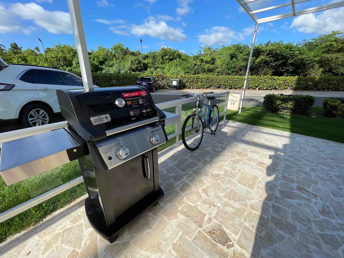 This luxurious beachfront apartment is located at Playa Nueva Romana South Beach. It is nicely decorated so you really feel the caribbean vacation vibes. The apartment has everything you need to make your stay pleasant. It’s fully air-conditioned, has a comfy queen bed, fully equipped kitchen and the living room space with a 55-inch TV. Full access to Pool, Gym and outdoor dinning / bbq / Pizza oven share area.