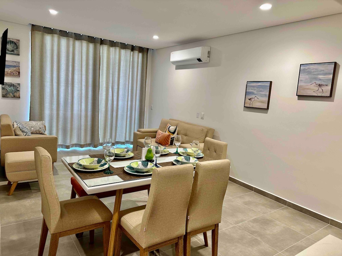 Տպավորիչ All New! բնակարան, որտեղից հիշարժան տեսարան է բացվում դեպի Կարիբյան ծով, գտնվում է Պլայա Սալգուերոյի հատվածում ։ Այս ոլորտը հատուկ է նրանց համար, ովքեր փնտրում են հանգստություն և հարմարավետ տարածք ՝ հիանալի հանգիստ վայելելու համար, այն ունի հատուկ գերարագ ինտերնետ Home Office - ի համար: Eol condomio - ն ունի ջակուզիի տարածքներ և լողավազաններ, ինչպես նաև ուղիղ մուտք դեպի լողափնյա տարածք, որտեղ կարող եք հանգիստ լինել և հանգստանալ Կարիբյան ծովի ափին:
