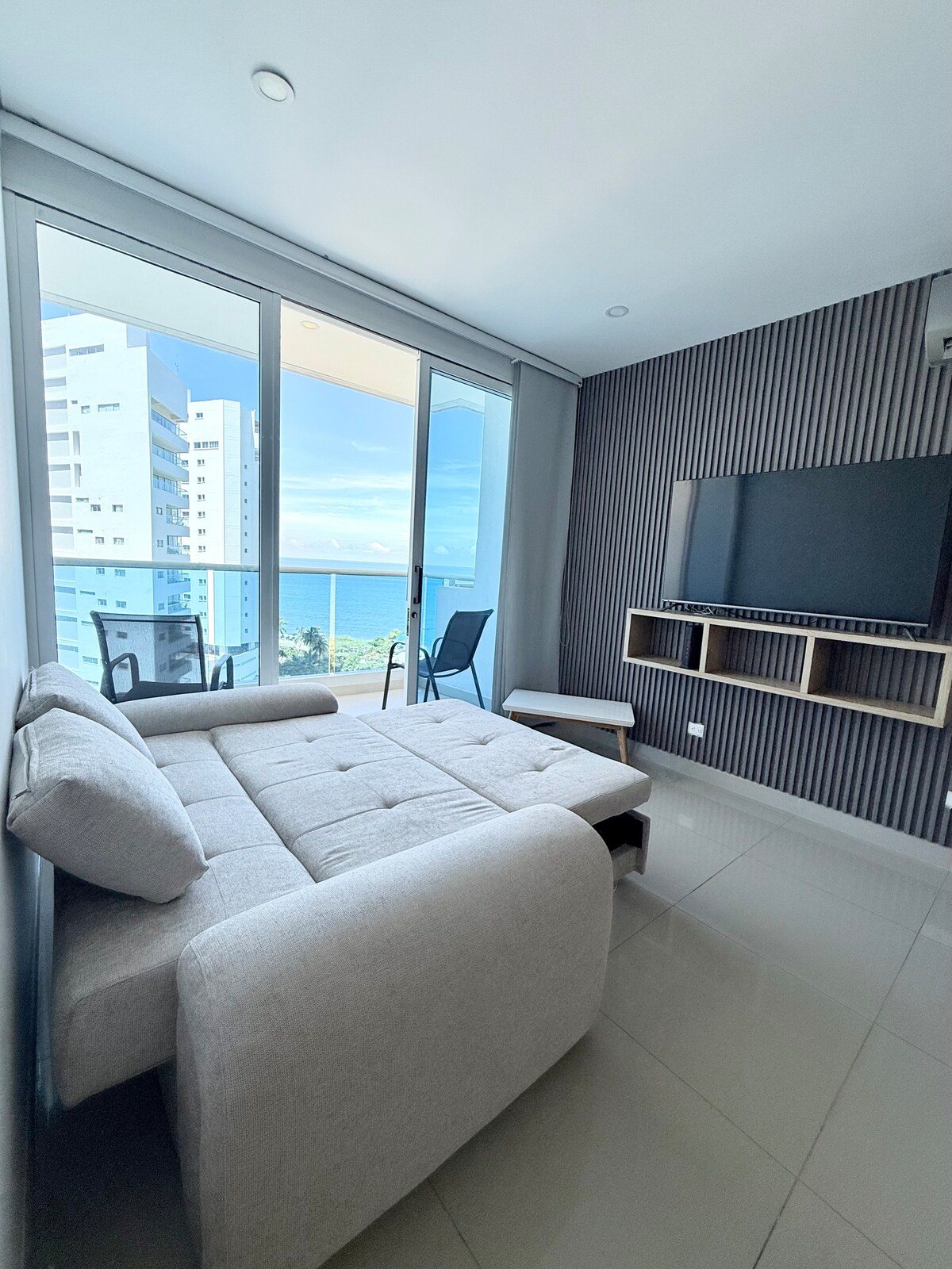 Los pisos altos y bajos estan sujetos a disponibilidad. NO SE PERMITEN VISITAS EN LOS APARTAMENTOS. Area 108m2. Cuenta con escritorio de trabajo con lámpara y silla de trabajo en cada habitación, caja fuerte por habitación, dos baños con amenities como shampoo, acondicionador, shower gel, papel higiénico, Toallas de cuerpo, manos y tapete para pies. Cocina totalmente equipada, zona de labores con lavadora, Tabla de planchar y plancha, balcón, sala, comedor y sofá cama.