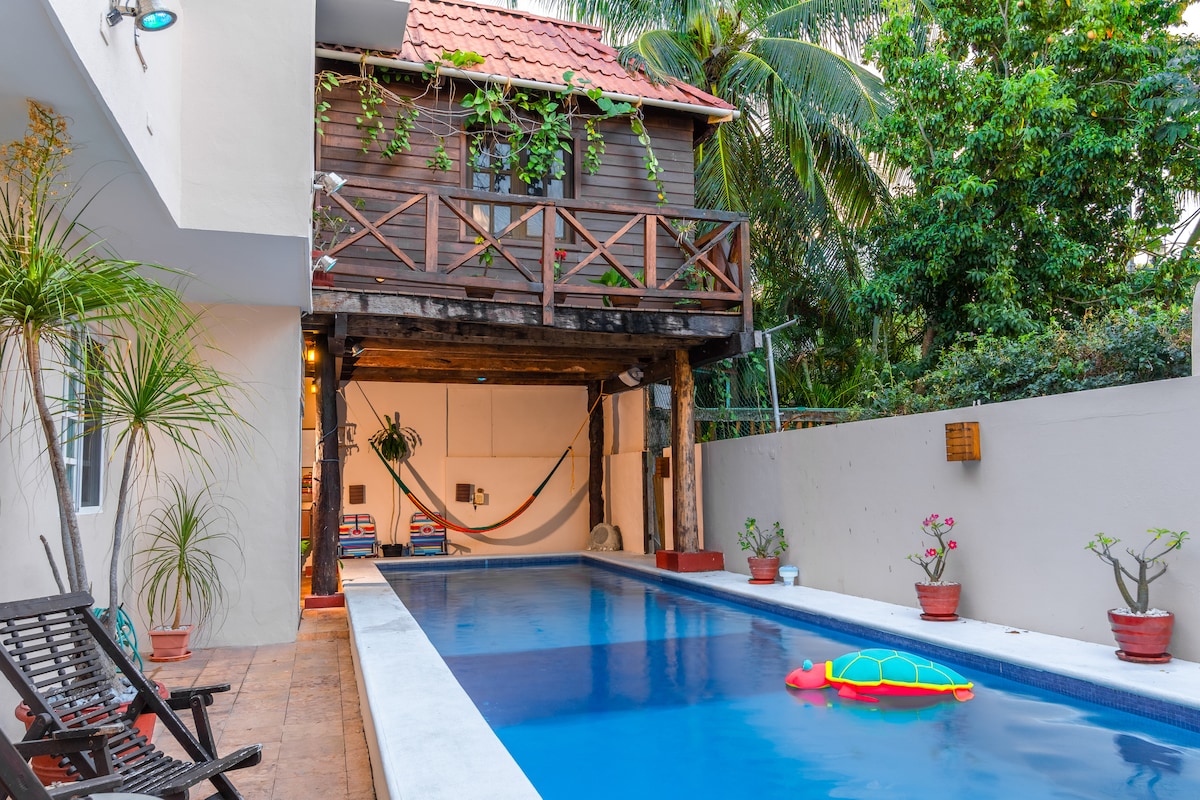 Մենք գտնվում ենք Պլայա Տորտուգասի դիմացի կողմում՝ հյուրանոցային գոտու սրտում։ Տան տանիքը մասնավոր է և բացվում է անմիջապես դեպի անծայրահեղ լողավազանի հարթակ։ Վայելեք Կանկունի փիրուզագույն օվկիանոսի և հսկայական ծովածոցի անզուգական 360° տեսարանները։ Մեր պենտհաուսը իդեալական է երկուսի համար, բայց կարող է տեղավորել մինչև 3 մեծահասակ, և ապահովում է բազմաթիվ հարմարություններ։ Վերցրեք մի լաստանավ է Isla Mujeres կամ վայելեք լողափ հենց փողոցում. Ավտոբուսի կանգառը դիմացի մասում է, 5 րոպե հեռավորության վրա է խնջույքների կենտրոնը։ Հարակից տարածքում գտնվող հարմարությունների խանութ և դեղատուն ։