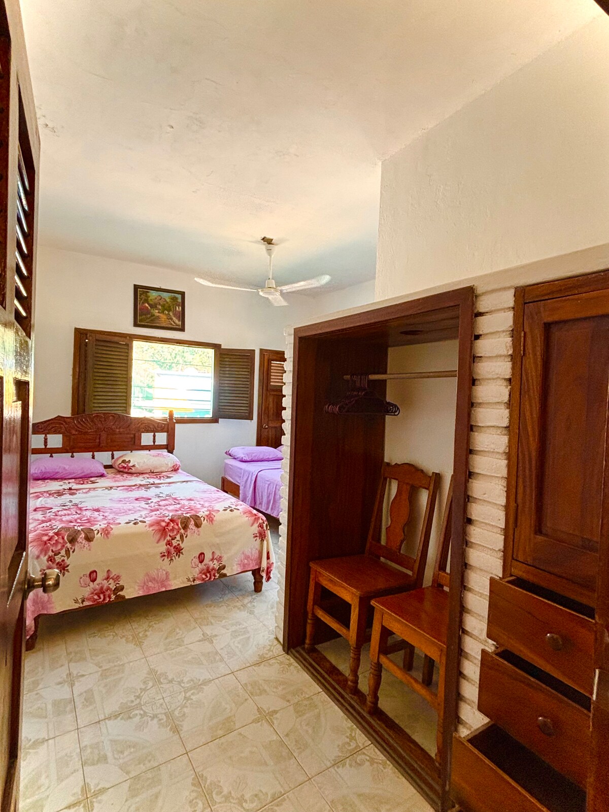 “Los Periquitos” at LALO is a two-bedroom guest space on the second floor of a small casita in Playa Zipolite, with a private deck surrounded by greenery. This is not a full apartment, but two private guest rooms located next to each other. Each room includes a queen bed, A/C, minibar with freezer, and a private bathroom with shower and toilet. About a five-minute walk to the beach and main street.