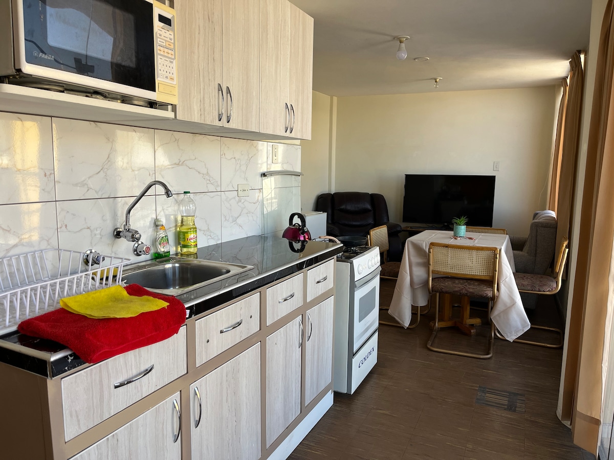 Վայելեք հարմարավետ հանգիստ այս հարմարավետ և ժամանակակից բնակարանում, որը գտնվում է Արեկիպայի կենտրոնից 5 րոպե հեռավորության վրա ՝ իդեալական հարմարավետություն փնտրող բոլոր տեսակի ճանապարհորդների կամ ղեկավարների համար Բնակարանն ունի հարմարավետ սենյակ, ընդարձակ պահարան, լիովին կահավորված խոհանոց, բար / հյուրասենյակ և լոգասենյակ Շուրջօրյա անվտանգություն և հսկողություն Նաև կարող եք վայելել տանիքի ընդհանուր տարածքը ՝ գրիլի տարածքով, որտեղից բացվում է քաղաքի, մարզասրահի և ջակուզիի համայնապատկերը ( ըստ ամրագրման)