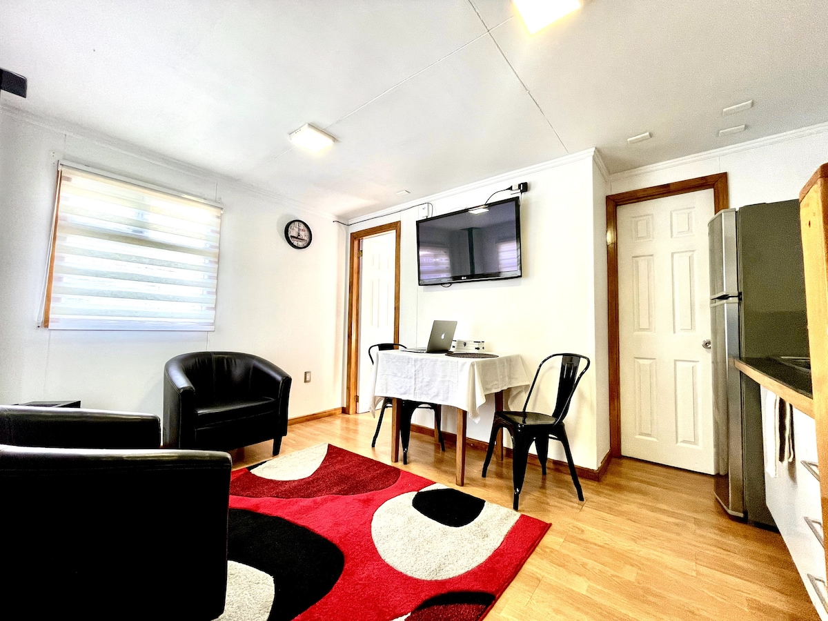 18 մց 2 հարմարավետ մեկ միջավայր ՝ անկախ մուտքով, 2 հոգու համար, երկտեղանի մահճակալ (2 մահճակալ), այն ունի առանձին լոգասենյակ, կահավորված խոհանոց, թեյնիկ, միկրոալիքային վառարան, մինիբար, կենտրոնացված ջեռուցում, տաք ջուր, Wi - Fi, հեռուստացույց և Netflix ։ Ներառում է սպիտակեղեն, սրբիչներ և հարմարություններ (շամպուն, կոնդիցիոներ և օճառ )։ Այս տունը գտնվում է Պուերտո Նատալեսում ՝ քաղաքի Պոլիդեպորտիվոյին շատ մոտ ։ Ոտքով 15 րոպե մինչև կենտրոն կամ ավտոբուսային տերմինալ ։