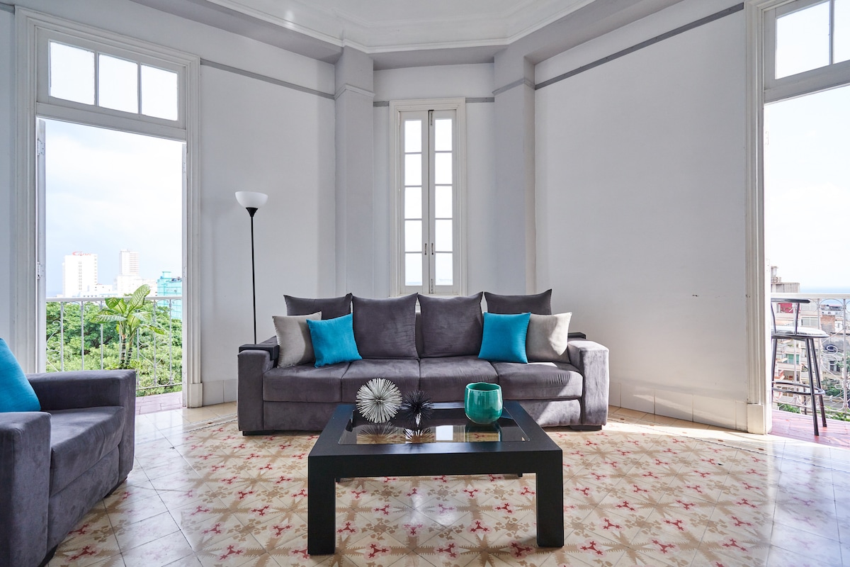 My app is in one of the most sought after areas of Vedado - Havana, this one faces the Malecon and next to the Melia Cohiba and Riviera Hotels, one block to night spots, bars, restaurants and cafes, the apt has Wiffi and a few meters It has a taxi rank 24 hours, very sentric and comfortable, It has a nice view of the Malecon habanero where you can have coffee and enjoy this space