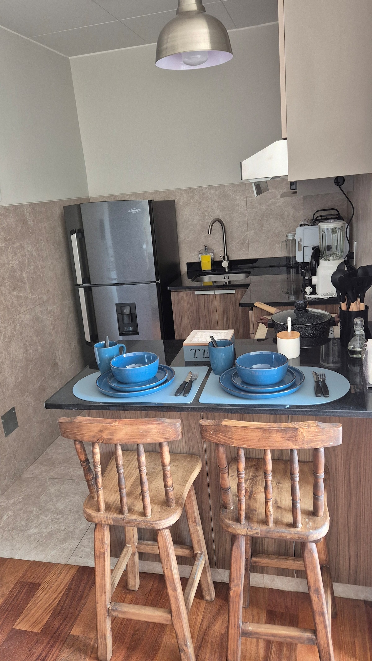 El departamento es encantador! La habitación cuenta con material de línea hotelera para un descanso confortable, la cocina y sala cuentan con todas las comodidades necesarias. La iluminación es perfecta! El departamento se encuentra en una zona completamente segura y centrica, a pasos de supermercados, embajadas, hospitales, bancos, cine, estaciones de teleférico, cafeterías, centros comerciales, bares de rock, discotecas, etc.