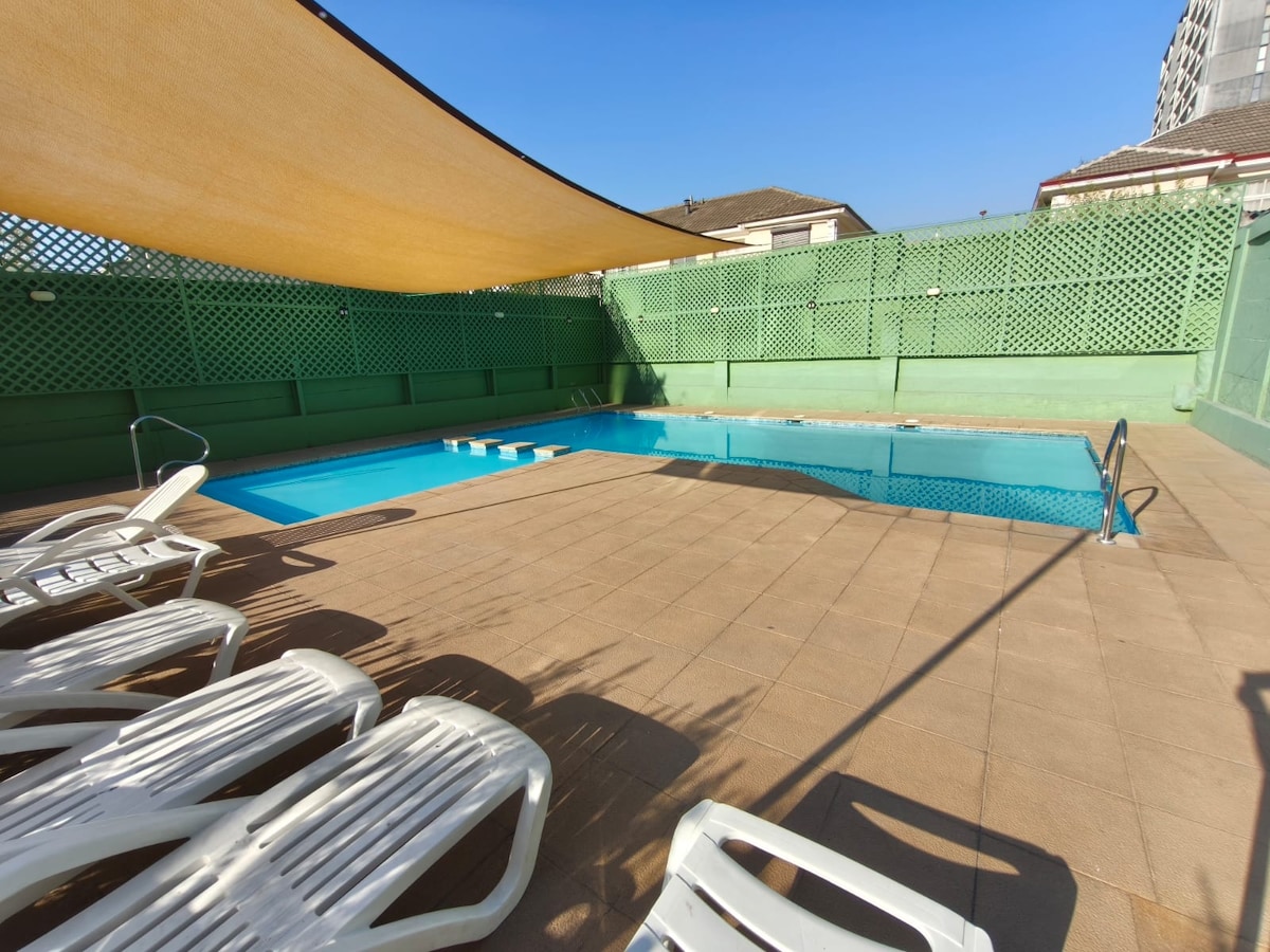 Բարի գալուստ իմ տուն Սանտյագոյում ։ Վայելեք իմ ժամանակակից և հարմարավետ բնակարանը, որը գտնվում է ñuñoa - ում ՝ իր հրապարակից, թատրոնից և լավագույն ռեստորաններից ոտքով հեռավորության վրա: ✅ Գլխավոր ննջասենյակ ՝ երկտեղանի մահճակալով ։ Արագ ✅ Wi - Fi և Սմարթ հեռուստացույց ՝ ձեր ժամանցի համար ։ ✅ Լիովին կահավորված խոհանոց ՝ ձեզ անհրաժեշտ ամեն ինչով ։ Տպավորիչ տեսարանով ✅ լողավազան ։ ✅ Մասնավոր կայանատեղի և անվտանգություն շուրջօրյա ։ ✅ Երկաթուղային կայարանը 1 թաղամասում Կատարյալ է Սանտյագոյում հարմարավետություն և կապ փնտրողների համար ։ 🚇