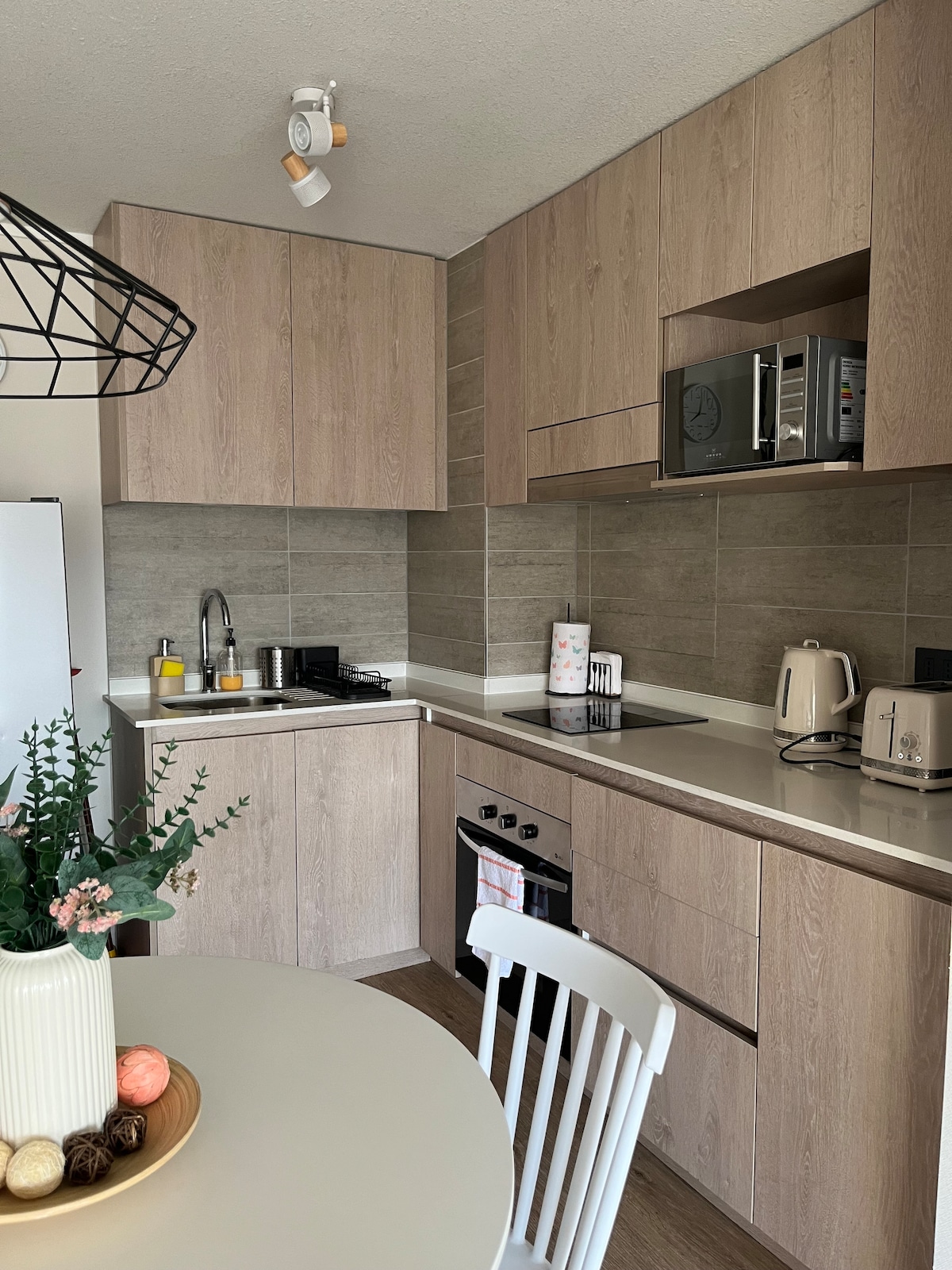 Stylish Nordic-style apartment in the heart of Ñuñoa — perfect for relaxing after exploring Santiago. Located in a safe, quiet, and well-connected neighborhood, just steps from Plaza Ñuñoa, the metro, restaurants, cafés, and shops. Close to the mall and Estadio Nacional. Features AC, washer-dryer, fully equipped kitchen, fast WiFi, and a dedicated workspace. Electronic lock for easy self check-in, 24/7 security, and private parking. Building amenities: gym, pool, and laundry.