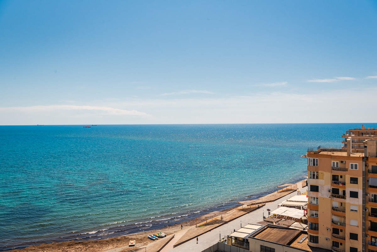 Beachfront Bliss with Jacuzzi & Bay Views 🌊✨ Step into luxury at our newly renovated 1-bedroom apartment, featuring a private jacuzzi on the balcony Ambient LED lighting with customizable colors and a full home sound system—all just steps from the sand in lively Durrës Bay. Whether you’re here to relax with a glass of wine in the jacuzzi, enjoy the lively atmosphere of the area, or simply wake up to the sound of the waves, this apartment has everything you need for an unforgettable stay.