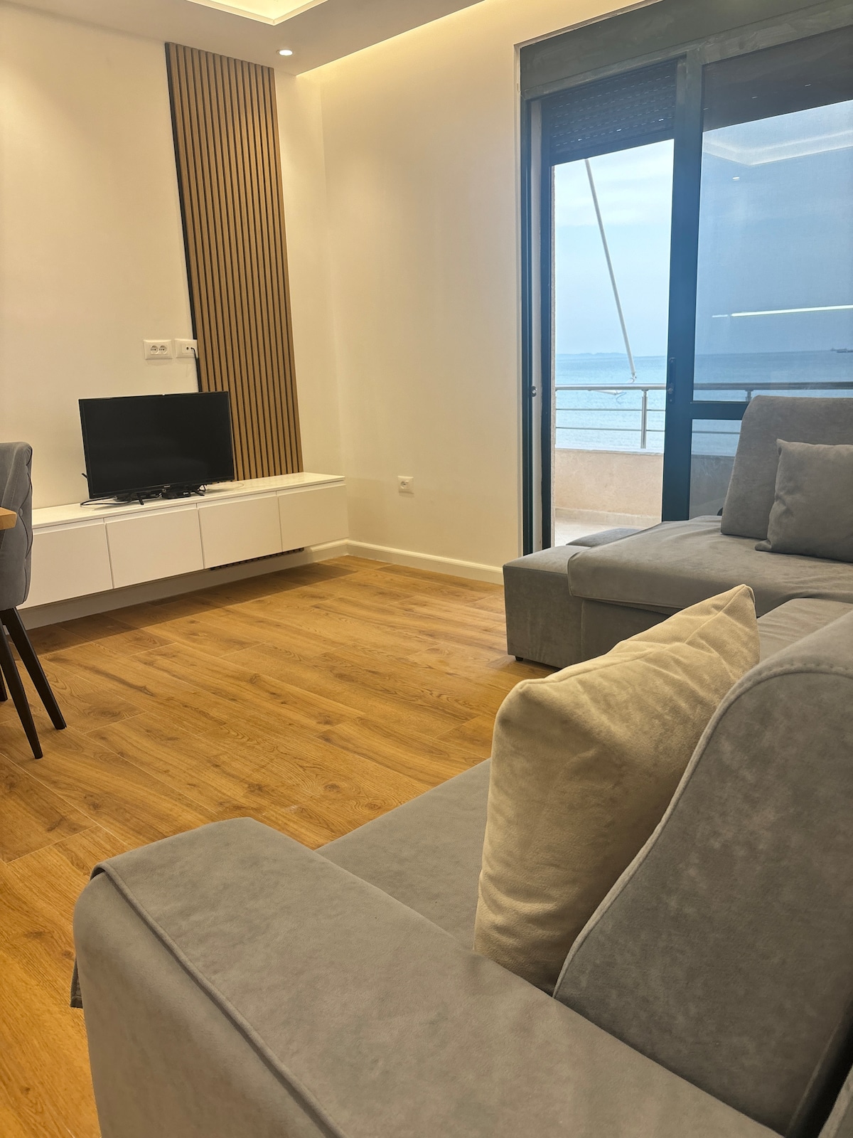 Beachfront Bliss with Jacuzzi & Bay Views 🌊✨ Step into luxury at our newly renovated 1-bedroom apartment, featuring a private jacuzzi on the balcony Ambient LED lighting with customizable colors and a full home sound system—all just steps from the sand in lively Durrës Bay. Whether you’re here to relax with a glass of wine in the jacuzzi, enjoy the lively atmosphere of the area, or simply wake up to the sound of the waves, this apartment has everything you need for an unforgettable stay.