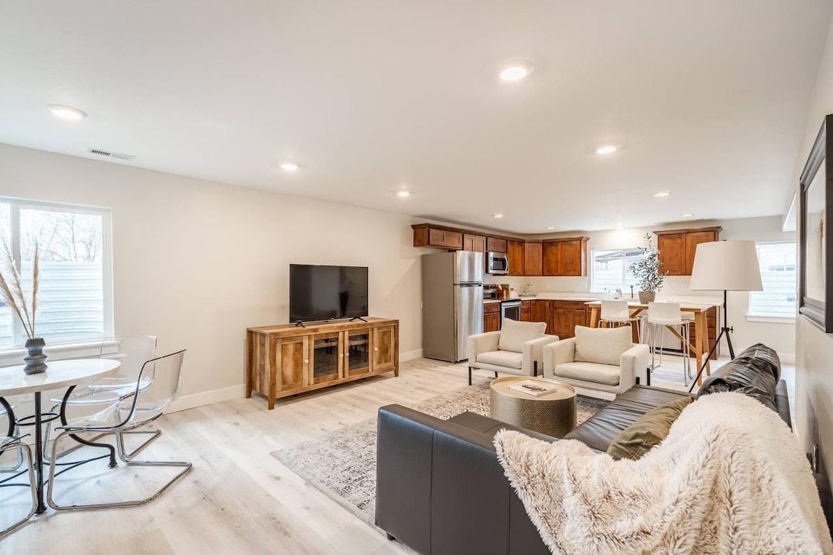 Spacious 2,000 sq ft private 3BR suite sleeping up to 8. Full basement with 1 bathroom, private entrance, and bright living spaces — ideal for families, hospital visits, and small groups. Location Just off I-15 — 30 min to Provo & SLC, 3 mi to Lehi PCH. Near parks, outlets, and restaurants. The space Private entrance, full kitchen, comfy beds, fast Wi-Fi. Light household sounds upstairs 7 AM–10 PM. Not suitable for parties or events. Guest access Entire private suite with separate entrance.