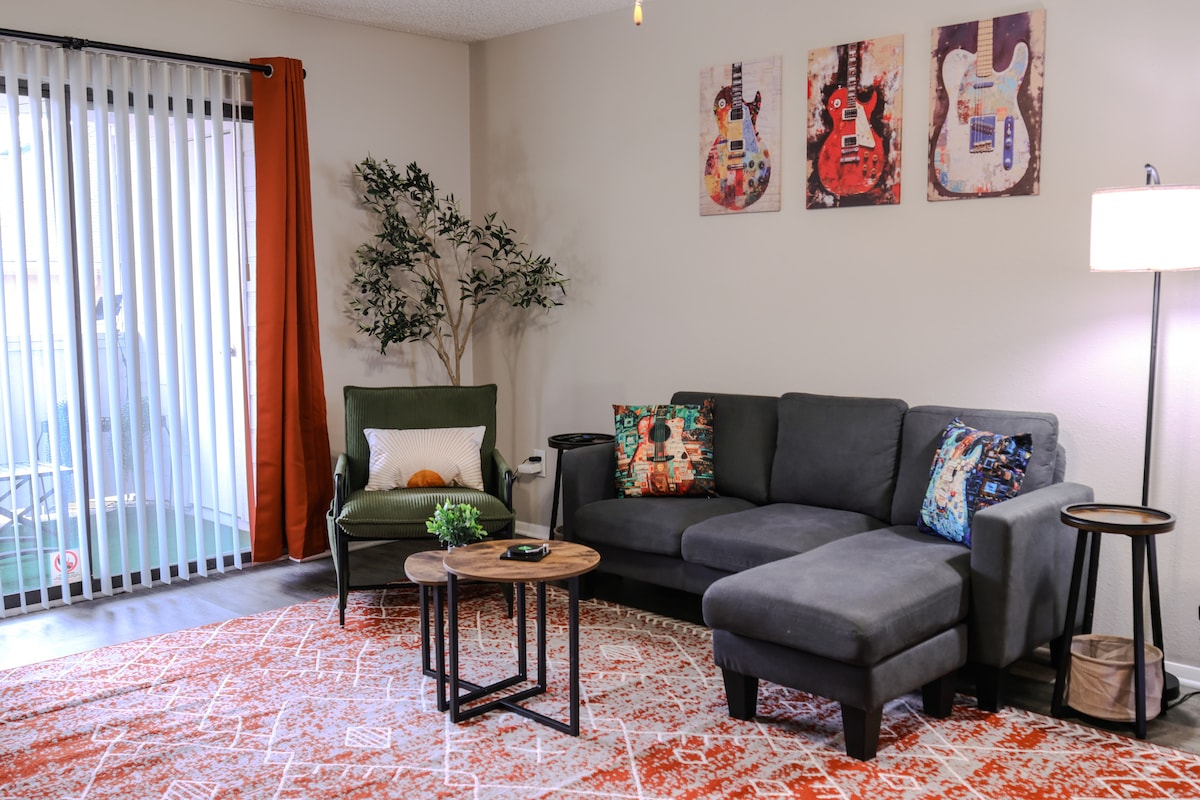 Բարի գալուստ Օսթինում մեր հարմարավետ քաղաքային հանգիստը ։ Այս նորաոճ բնակարանն առաջարկում է ժամանակակից բնակելի տարածք ՝ հարմարավետ ճաշասենյակով, բազմոցով հարմարավետ լաունջով և հատուկ աշխատանքային տարածքով ։ Վայելեք ձեր առավոտները առանձին պատշգամբում ՝ գեղատեսիլ տեսարաններով: Գտնվելով Օսթինի սրտում ՝ դուք կկարողանաք արագ օգտվել աշխույժ ճաշկերույթներից, գնումներից և ժամանցից ։ Կատարյալ է բիզնես ուղևորների կամ հանգստյան օրերի հանգստի համար, քաղաքի աշխույժ մթնոլորտում վայելեք հարմարավետությունն ու հարմարավետությունը ։ Օդանավակայանի և քաղաքի կենտրոնի մոտակայքում ։
