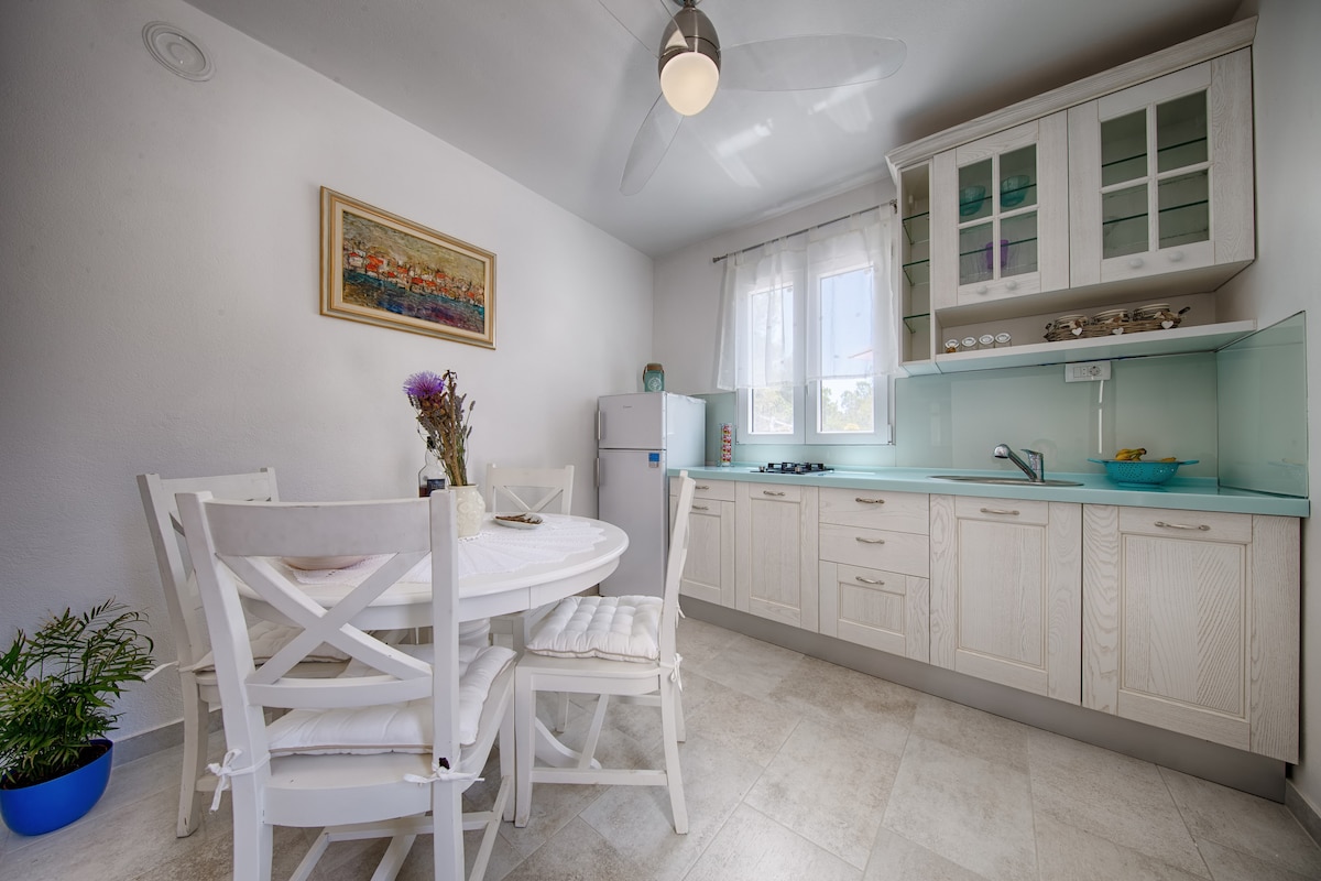 Brand New LOFT բնակարան, որը բաղկացած է մեծ խոհանոցից ՝ ճաշասենյակով,երկու ննջասենյակով, երկու լոգասենյակով, լվացքասենյակով և պատշգամբով, որտեղ կարող եք վայելել ծովի և Պակլենի կղզիների գեղեցիկ տեսարանը: Մենք ունենք ազատ ավտոկայանատեղի տան դիմաց: Տունը գտնվում է հանգիստ գոտում ,բայց շատ մոտ է բոլոր հարմարություններին: Կենտրոնը ընդամենը 10 րոպե է տնից և 5 րոպե դեպի առաջին լողափ,սուպերմարկետներ և ռեստորաններ: