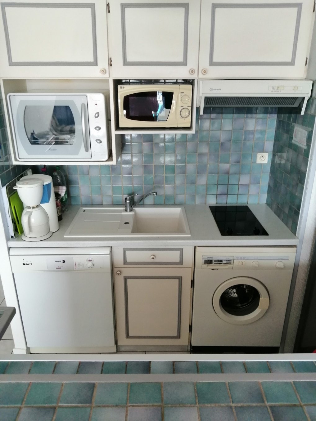 Appartement 1er étage dans résidence neuve, exposition sud/est, comprenant : - Entrée avec placards coulissants ; - Une pièce de vie avec coin cuisine, séjour avec accès balcon ; canapé convertible. - 1 chambre avec placards coulissants. lit queen size. 160x200. confort : ferme. - Une salle d'eau. Volets roulants pour chaque pièce. Tv Vue sur l'avant port.