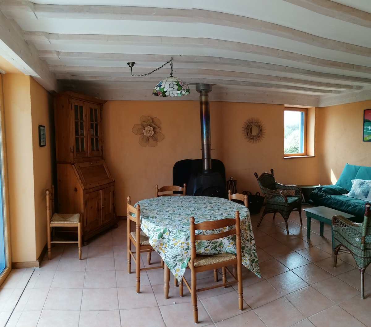KUZH - HEOL - ը հարմարավետ EcoGITE է առանց ծխելու. փայտ, ծղոտ , հատակի ջեռուցում արևային ջրատաքացուցիչի միջոցով: Լրացուցիչ փայտի վառարան ձմռան համար, ժամանման համար առաջարկվող գերանների 1 զամբյուղ: Իդեալական է 5 հոգանոց ընտանիքի համար: Առաջին հարկում. Մեծ հյուրասենյակ ՝ 2 մեծ պատուհաններով, որոնք բացվում են դեպի ծովի տեսարանով համայնապատկերային տեռաս, ինտեգրված խոհանոց, ցնցուղով լոգասենյակ, զուգարանի լվացարան ։ KUZHEOL - ը իր երկվորյակների, SAVHEOL - ի կողքին է: Լողափ է 10mn է Pied.
