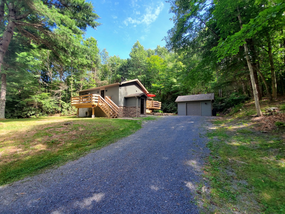 Վայելեք այս հանգիստ, բայց իդեալականորեն տեղակայված Պոկոնո լճի հանգստի տան վարձակալությունը ։ Տեղակայված է մասնավոր, անտառապատ տարածքում, ընդամենը րոպե հեռավորության վրա Pocono Raceway, Kalahari Կազինո եւ Waterpark, Big Boulder Mountain, եւ Tobyhanna պետական այգում,այս գույքը եկեք ընտրել, թե ինչպես եք ուզում ազատել!Եթե բնության գրկում հանգստանալն ավելի շատ ձեր արագությունն է, վերադարձեք 3 ննջասենյակով, 2 ննջասենյակով տուն, որտեղ կարող եք մյորես տապակել կրակարանի մոտ