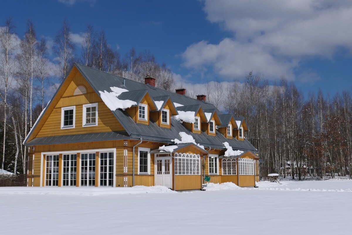 Այս նորաձև, 180 մ² մակերեսով երկհարկանի բնակարանը Nature Lodge-ում գտնվող երկու բնակարաններից մեկն է։ Տունը գտնվում է ՅՈՒՆԵՍԿՕ-ի համաշխարհային ժառանգության տարածքում՝ Բյալովյեժայի վայրի անտառում, որը գտնվում է ամբողջ ԵՄ-ում կենսաբազմազանությամբ ամենահարուստ տարածաշրջանում։ Սեփականությունը զբաղեցնում է 2,5 հեկտար և անմիջականորեն սահմանակից է նախնադարյան անտառին. աշնանից մինչև գարուն մեր պատշգամբից կարող եք դիտել բիզոններին, եթե բախտը ձեզ չի դավաճանի։ Ազգային պարկի զբոսաշրջային արահետները սկսվում են գրեթե շքամուտքից։ Մեզ այցելում են եղնիկներ, վայրի խոզեր և այլն։