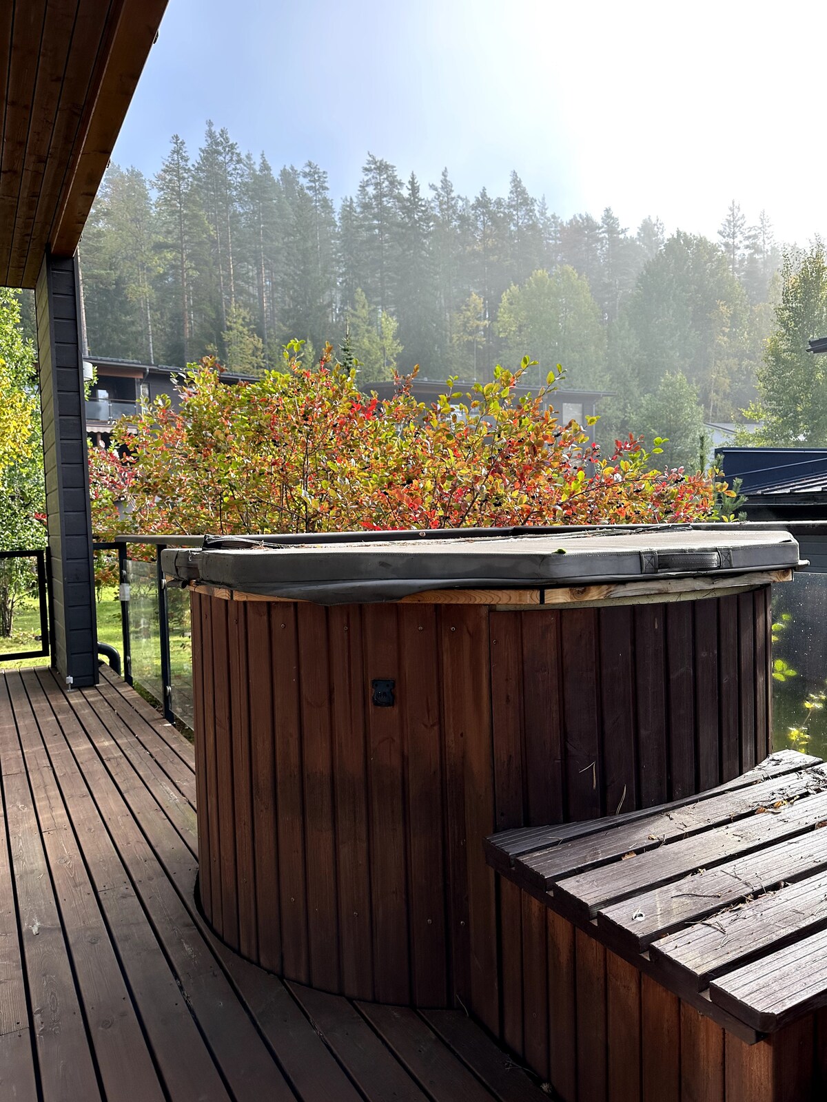 Tervetuloa viihtymään uudessa, modernissa talossa Saimaan rannalla! Tämä tyylikäs ja laadukkaasti varusteltu koti tarjoaa täydelliset puitteet rentoutumiseen luonnon keskellä, kaukana kiireestä ja kuitenkin vain 15 min päässä Lappeenrannan keskustasta. Talon suurista ikkunoista ja kolmelta terassilta avautuu upea järvimaisema, joka lumoaa vuodenajasta toiseen. Majoitustilaa on kahdeksalle hengelle, joten kohde sopii mainiosti perheille, ystäväporukoille tai liikekumppaneille. Oma rauha.