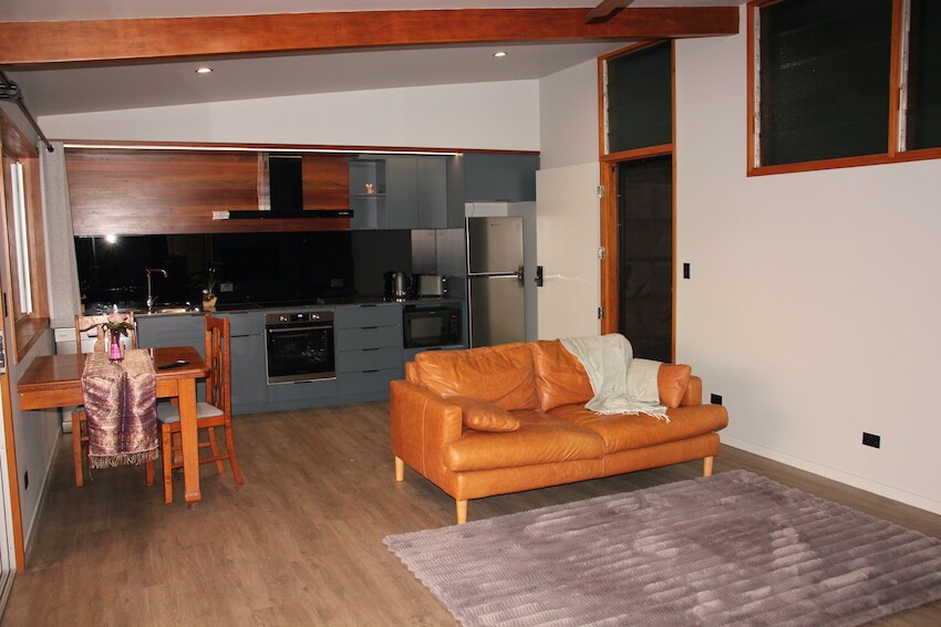 Main Beach is just a short 2 minute stroll from the Hideaway. This 17 km long, white sandy beach is patrolled and great for surfing, fishing, swimming or a beach walk. This is a very recently renovated and self contained studio unit. We live upstairs in the main house, but your area is very private. Your entrance, bathroom, kitchenette, bedroom, deck and all amenities are for your use only during your stay. All linen, towels, shower gel, shampoo and conditioner is provided.
