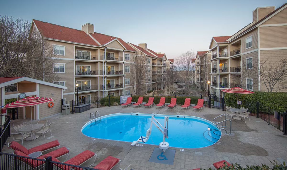 Branson at the Meadows is a scenic Ozark retreat with spacious condo-style accommodations, multiple pools, relaxing hot tubs, and welcoming recreation spaces- all in a cashless environment for effortless convenience. Set amid rolling hills, minutes from live shows, Table Rock Lake, hiking trails, golf courses, and outdoor adventures. From sunrise views to star-filled evenings, every stay transforms into a memorable escape where comfort, adventure and Ozark charm come together effortlessly.