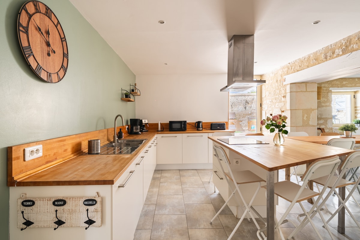 🌿 Villa Emma à Châtellerault située seulement à 20 min du Futuroscope. Maison cosy pour 4 voyageurs, en plein centre-ville. 🛏️ 2 chambres :lLit double + 2 lits simples 🍳 Cuisine équipée · Nespresso · Fibre · Clim 🚿 Baignoire + douche · Lave-linge · Draps fournis 🌿 Jardin privatif rénové 2026 🛋️ Salon lounge · Gazon toujours vert 🍽️ Table teck, parasol 🔌 Plancha électrique · Végétation méditerranéenne. ✅ Superhôte · 4,88⭐ · Parking gratuit ✅ Animaux acceptés · Arrivée autonome