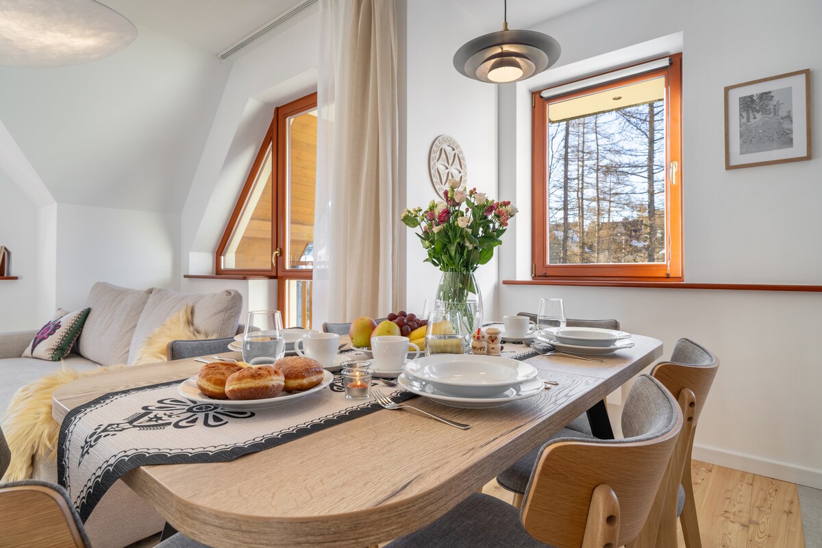 Our apartment is located at the first floor of Tamok Lifestyle Villa, it's perfect for a couple looking for a romantic stay, in a place offering great mountain views. Beautiful Tatra mountains are right behind the windows, so you may enjoy the view from your bed or balcony. It offers 20 sq meters of space, consist of a living room with kitchenette and a bathroom. The balcony is perfect for a morning coffee on a sunny day:)