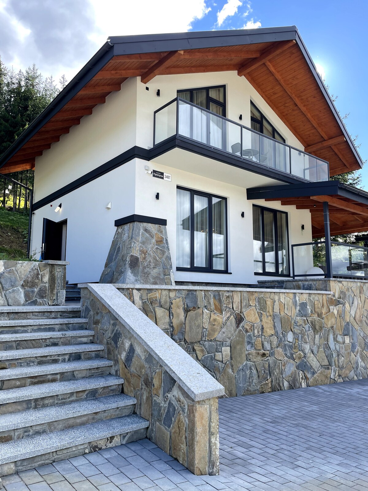 Unwind at this stunning 1-story riverside house. It was lovingly built to spend time with friends and family on the big dining table or by the fire pit sharing stories and memories. High-beamed ceilings, and authentic details for a charming feel of unity with the uniqueness of the Hutsul region. Enjoy the mountain views from all patios. The house is located 1km from the main road. Locals live nearby. There are 3 houses on territory. Museums and beautiful hiking trails are located close by.