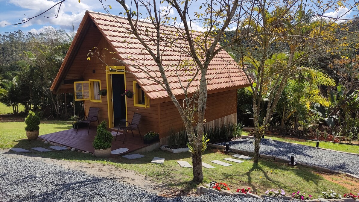 Chalé de madeira contato direto com a natureza , temos um riacho que passa em frente ao chalé e uma linda banheira interna . Oferecemos toda roupa de cama, toalhas, sabonete, roupão , cozinha completa, inclusive taças de vinho, espumante, máquina café dolce gusto com cápsulas , churrasqueira e lareira externa com lenha ou carvão num espaço externo ao ar livre em meio a plantas e árvores . Entrada privativa e reservada !!! Fornecemos cestas de café da manhã !! Consulte nos como funciona !!