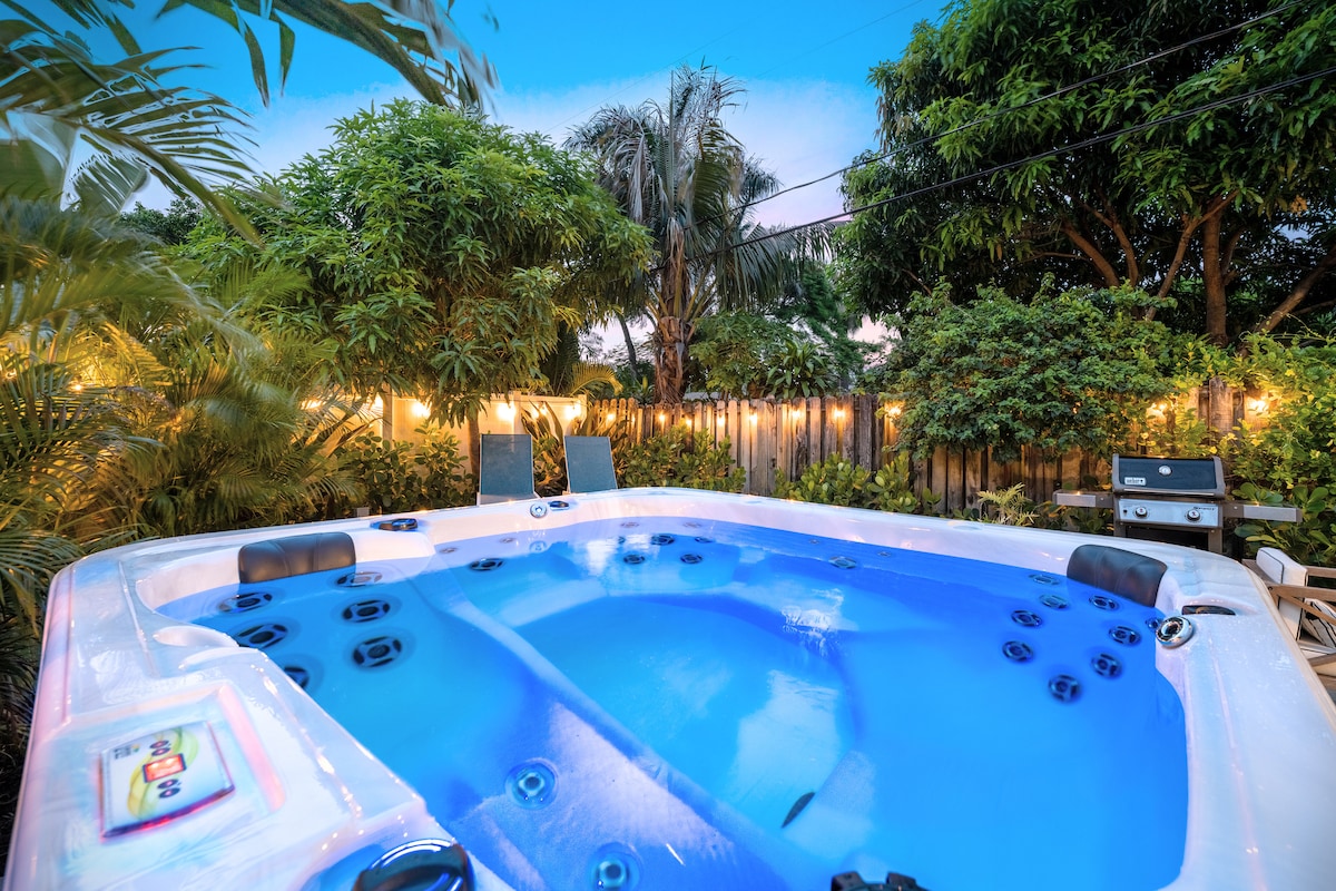 Բացահայտեք մաքուր հանգիստ մեր վերջերս վերանորոգված դուպլեքսում ՝ մասնավոր արևադարձային օազիսի հետնաբակով ։ Արևի լոգանք ընդունեք հարմարավետ լաունջի աթոռների վրա և թարմացնող ընկղմվեք բուժական սպայի մեջ ՝ կարգավորելի ջրով և օդային շիթերով ։ Վայելեք բացօթյա հանգիստը պատիոյի հարմարավետ նստատեղով և հմայիչ տախտակամածով: Սեզոնին կարող եք համտեսել համեղ մանգոներ ։ Հեռուստացույցների հոսքային հեռարձակում հյուրասենյակում և բոլոր ննջասենյակներում ։ Այս օազիսը գտնվում է լողափից մոտ մեկ մղոն հեռավորության վրա և ռեստորաններից, խանութներից և մթերային խանութներից մոտ կես մղոն հեռավորության վրա: