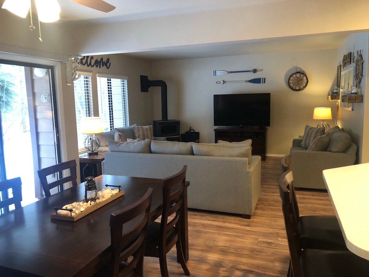 Luxury condo on the lake, newly remodeled with romantic setting, exceptional views and modern comforts. Large 65" streaming TV with YouTube TV and your accounts. Linear fireplace, radiant floor heating throughout, cozy and comfortable. Smart speaker controlled lighting, modern, euro style appliances, large soaking tub with endless hot water. View from your deck is incredible. Beachside pool in summer and lake swimming is the best. Fire and smores by the lake... Come and make memories. Ah, McCall