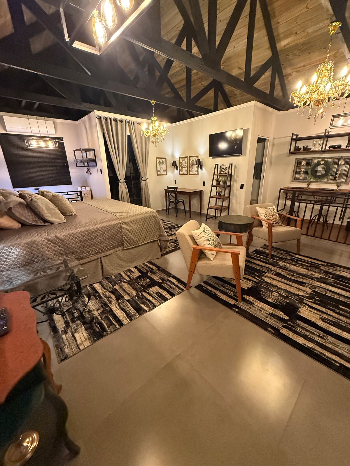 Ժամանակակից և հարմարավետ ստուդիա: Ամբողջական խոհանոց ՝ հագեցած մինիբարով, միկրոֆոնով, AirFryer - ով, CookTop - ով, սրճեփով և սենդվիչ պատրաստող սարքով, հեռուստացույցով» 42 ՝ Smart Roku - ով, Wi - Fi - ով, օդորակիչով, երկտեղանի մահճակալով ՝ Bicama - ով ։ Շուկայի, դեղատան, հացաբուլկեղենի, Vicent Hospital/São Camilo - ի (100 մետր), 13* bib (1,7 կմ) UEPG Campus - ի (3,3 կմ), Շրջանային հիվանդանոցի (3,8 կմ), Կենտրոնի (4,5 կմ) և ռազմավարական կետ է նրանց համար, ովքեր ցանկանում են իմանալ տարածաշրջանի գեղեցկությունները, ինչպիսիք են Վիլա Վելհա (23 կմ), Բուրակո դու Պադրեն (25 կմ) և Ալագադոսը (19 կմ):