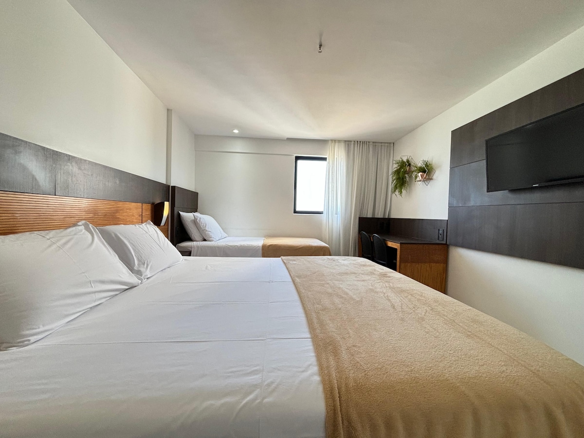 Suite 302A Hotel Quality Natal Plaza - ում կացարան է տրամադրում բացօթյա լողավազանով, մասնավոր կայանատեղիով, մարզասրահով, սաունայով, ընդունարանի աշխատակցի, ամենօրյա սպասուհու հետ: Հյուրանոցի ռեստորանն առաջարկում է նախաճաշ 40.00 - ի համար և սենյակների սպասարկում: ( Ներառված չէ օրական գնի մեջ )։ Այս հյուրանոցում գտնվող բնակարանը պարծենում է Արգուով, անվճար Wi - Fi - ով, միկրոալիքային վառարանով, միկրոավտոբուսով, առանձին լոգասենյակով, հարթ էկրանով հեռուստացույցով և սեյֆով ։ Մնացեք ամեն ինչին մոտ գտնվող բարդ վայրում ՝ տեսարանով և Պոնտա Նեգրա լողափից 100 մ հեռավորության վրա և այն ամենը, ինչ ուզում եք այցելել: