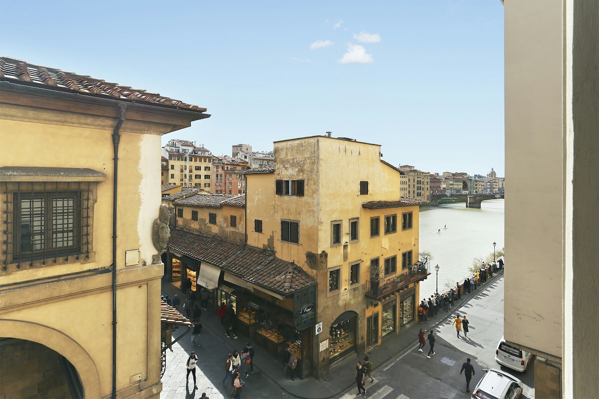 75 քմ մակերեսով բնակարանը վերանորոգվել և տեղադրվել է airbnb - ում ապրիլին ՝ 22 - ին ։ Շքեղ կացարան հենց գետի վրա, Pontevecchio - ի զարմանահրաշ տեսարաններով: 1 երկտեղանոց ննջասենյակ,մեծ հյուրասենյակ, խոհանոց : շատ կենտրոնական, բայց չափազանց հանգիստ: Երրորդ հարկ վերելակով, Բնակարանը հագեցած է բարձրակարգ հյուրանոցային հավաքակազմի բոլոր հարմարություններով և ունի կահավորված խոհանոց, A/C , օպտիկամանրաթելային ինտերնետ: LED հեռուստացույց
