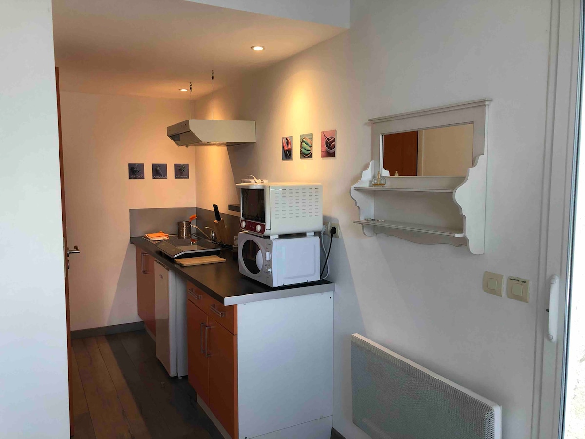 Ծովից մի քանի րոպե հեռավորության վրա և կանաչ միջավայրում ՝ հարմարավետ ստուդիայում, որտեղ դուք կունենաք հանգիստ և շատ հաճելի հանգիստ, և կարող եք հանգիստ վայելել ջեռուցվող փակ լողավազանը և սպա կենտրոնը: Գտնվում է կուլմինացիայում ՝ առանց հարևանների, Կարող եք քայլել դեպի քաղաքի կենտրոն և քայլել ափի երկայնքով գտնվող արահետներով ։ Ամրագրեք ԱՌՈՂՋ ԱՊՐԵԼԱԿԵՐՊ և ԳԵՂԱԳԻՏԱԿԱՆ ծառայություն Cécile Bien -être et Beauté - ի միջոցով, մերսումներ և դիմագծեր ։