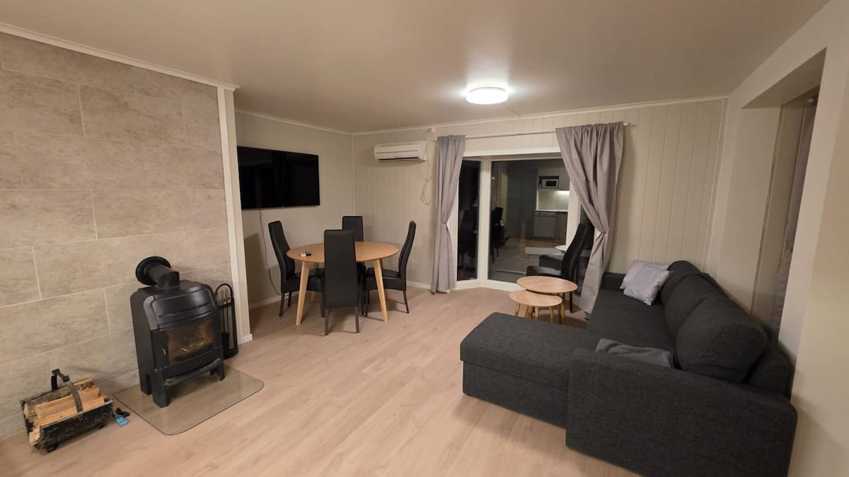 There is lots to enjoy at this historic farm in beautiful surroundings. The barn house from the 1700s is situated in Porsgrunn city centre, and everything you need is within walking distance. The big 3-bedroom apartment is fully furnished in classic old Norwegian style. You can enjoy the evening sun in this green space during spring and summer, or light the fire in one of two fireplaces while watching the snow outside the window. Private parking and internet included.