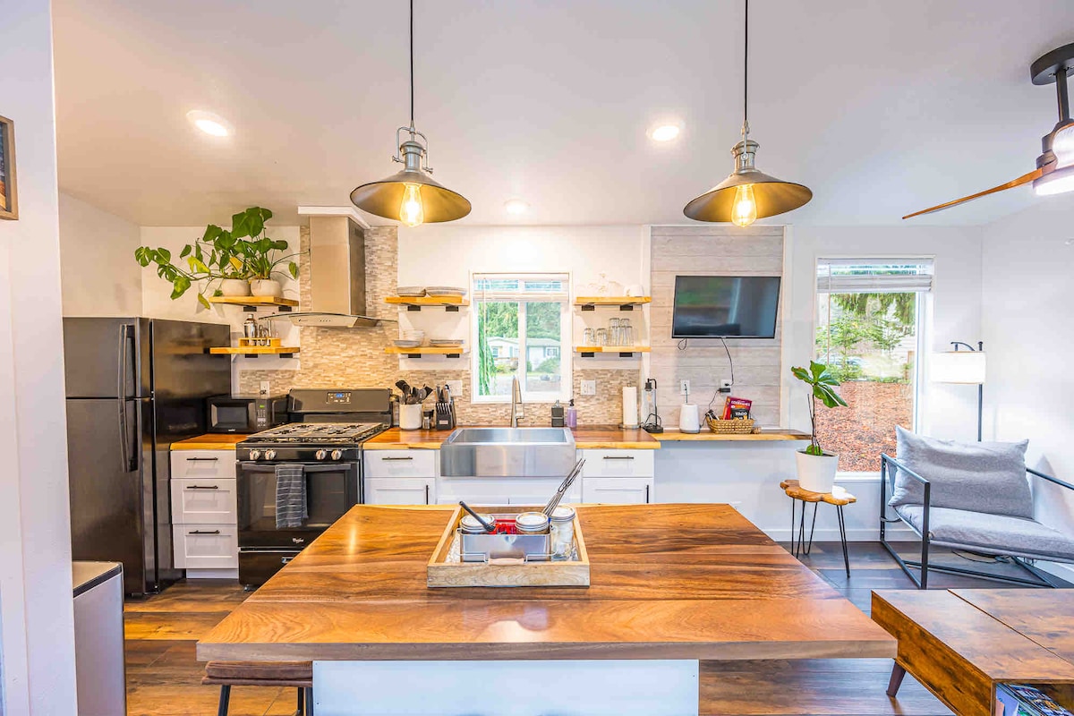 Welcome to The Ranch House! Nestled in the heart of the Pacific Northwest, this charming house is your gateway to a perfect blend of comfort, convenience. Step into this 3BDR, 2 BA spacious home, adorned with pnw inspired decor. Enjoy cooking a meal in the fully equipped kitchen, cozy up on the couch and enjoy the surrounding landscape through large windows, or enjoy a soak in the hot tub after a hike. We look forward to hosting you in the comforts of your home away from home.