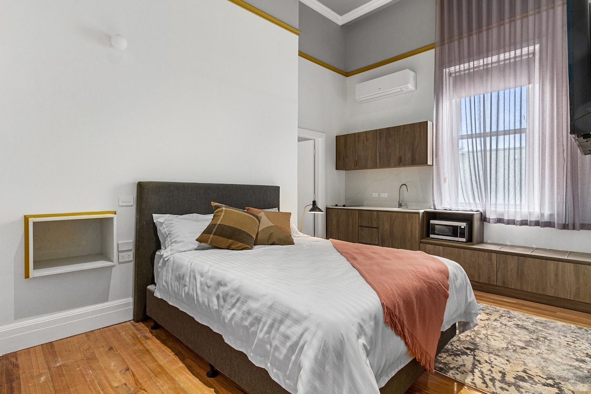 Located in the Old Town Hall - Our meticulously designed two bedroom suite offers the perfect balance of luxury and comfort. Boasting 2 Bedrooms with Queen Beds, a well-appointed kitchenette equipped with essential appliances, a large modern bathroom with shower, flat screen Tv's and complimentary wifi. Rooms located on level one, accessible via stairs only
