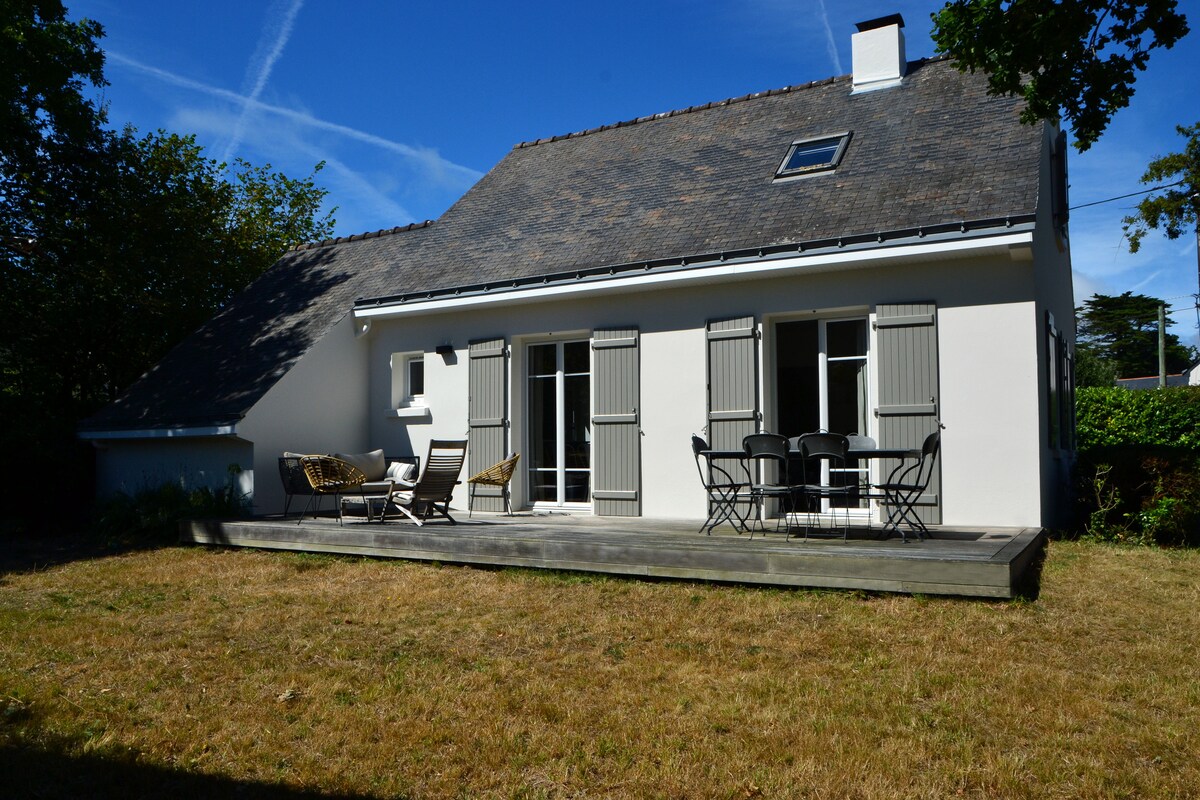 Petite maison de vacances avec beaucoup de caractère construite en 2014 sur un agréable terrain arboré à 300m de la plage et 400m du bourg avec toutes les commodités. Fonctionnelle et facile à vivre aux beaux jours, confortable et chaleureuse en arrière saison, nous l'avons meublée dans l'esprit d'une villégiature de bord de mer des années 60. Un lieu idéal pour se ressourcer mais aussi visiter la Presqu'île Guérandaise, la Brière, le Golfe du Morbihan ou Belle-Ile-en-Mer (depuis La Turballe).