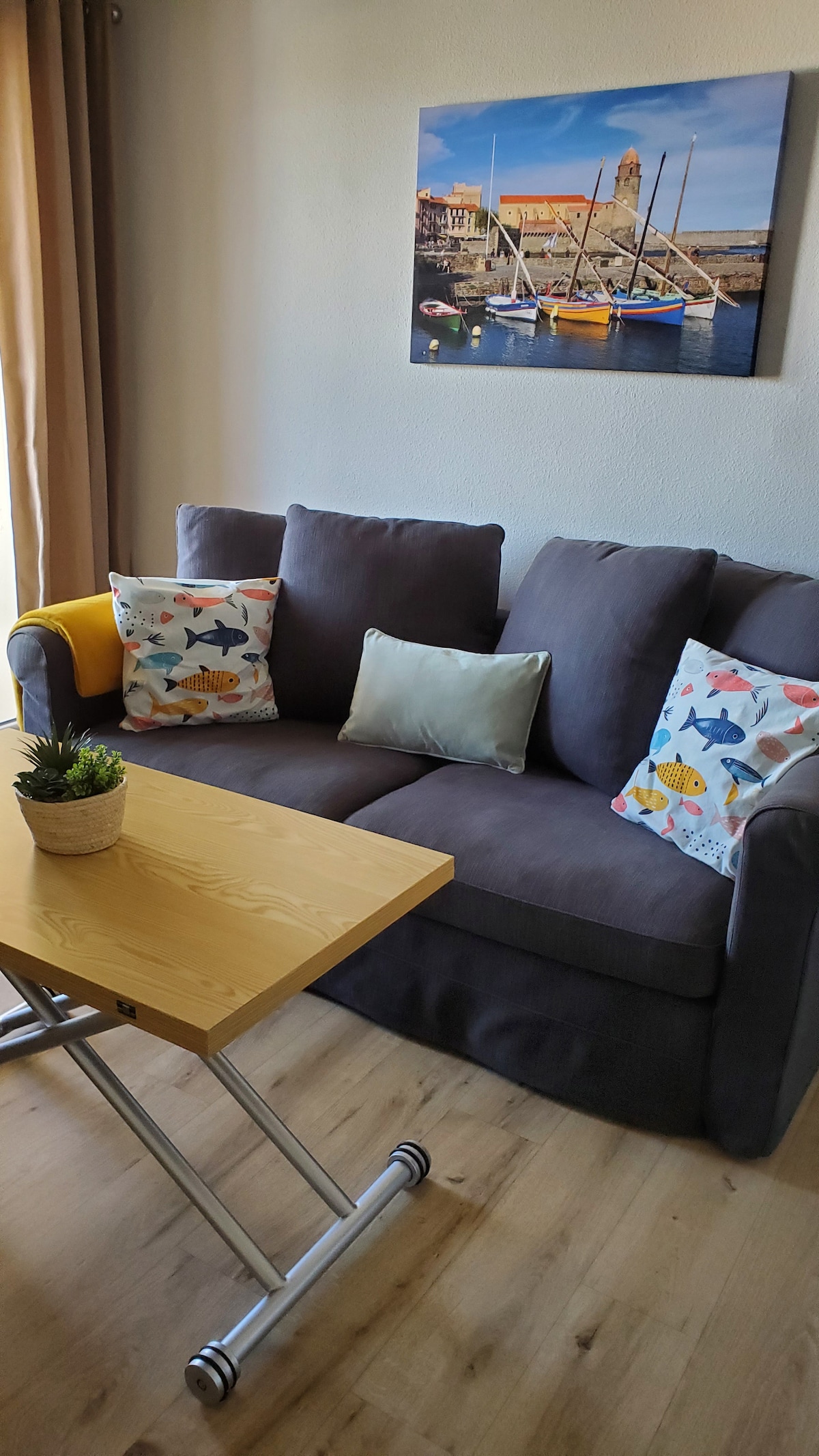 Որակյալ երկու սենյականոց բնակարան շքեղ բնակարանում, որը գտնվում է Collioure - ի բարձունքին, որը թույլ կտա ձեզ օգտվել յուրահատուկ համայնապատկերից: Դիտել ծովը, լեռները, զանգակատունը եւ հին Collioure. Տեղադրությունը շատ մոտ է կենտրոնին, բայց բավականաչափ հեռու է սեզոնային բազմությունից (լողափից և զանգակատնից 10 րոպե հեռավորության վրա )։ Բացօթյա տարածք - լոգիա, շրջելի ծորացող օդորակիչ, մոնտաժված խոհանոց, որակյալ ձայն և ջերմամեկուսացում: Կապված բնակարան ։ Ապահով կայանատեղի ։