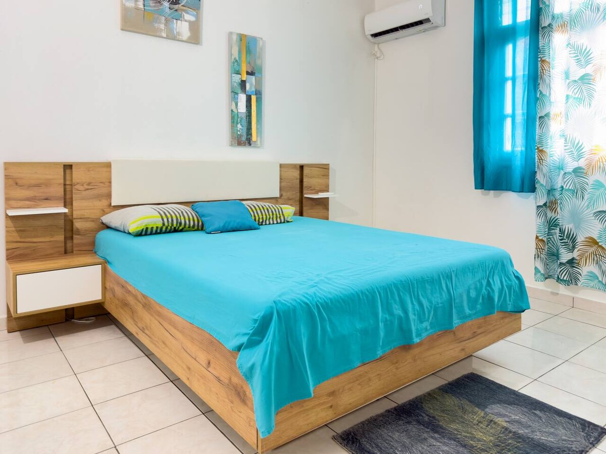 Լողափից 250 մ հեռավորության վրա ՝ արևադարձային մթնոլորտում, այս կացարանը հրավիրում է ձեզ լավ ժամանակ անցկացնել կղզու շրջագայությունների և լողափի և սերֆինգի զբոսանքների միջև: Հագեցած է:: - 2 ննջասենյակ ՝ 140 մահճակալով, օդորակիչով և օդային խառնիչներով հագեցած, - կահավորված խոհանոց, - լվացքի մեքենա, - լոգասենյակ, - առանձին լողավազան, - ջրի բաք ՝ անժամանակ անջատումներից խուսափելու համար, - փակ կայանատեղի ։