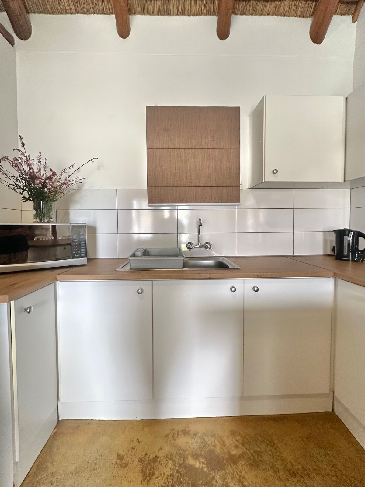 Այս հմայիչ կիսակառույց քոթեջն ունի երկու ննջասենյակ, լաունջ, երկու լոգասենյակ և խոհանոցիկ ՝ հագեցած սառնարանով, ջեռոցով և գազօջախով ։ Այն առաջարկում է հեռուստացույց ՝ ընտրված DStv ալիքներով, դիմացի այգի, բակ և բացօթյա բրայի տարածք ։